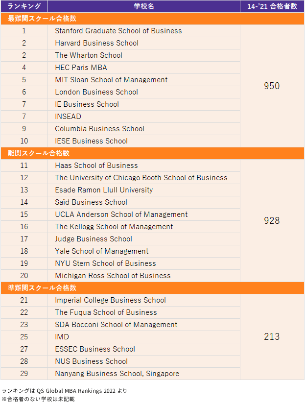 主要大学院 合格実績一覧(MBL・LLM含む)