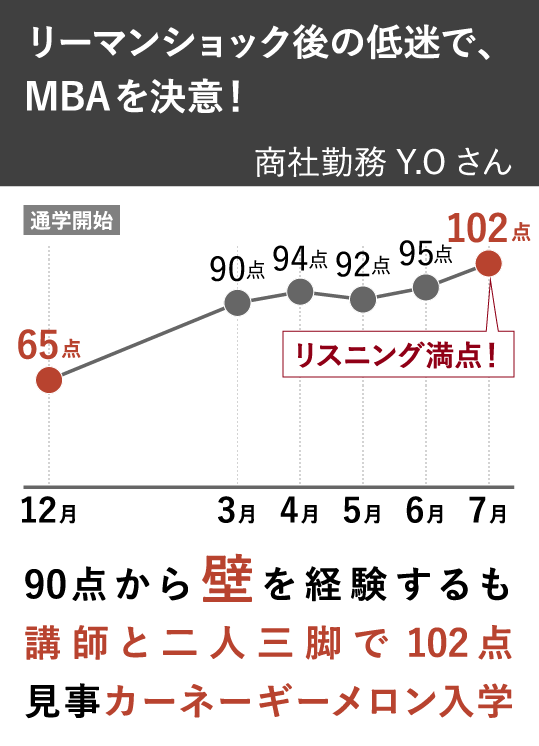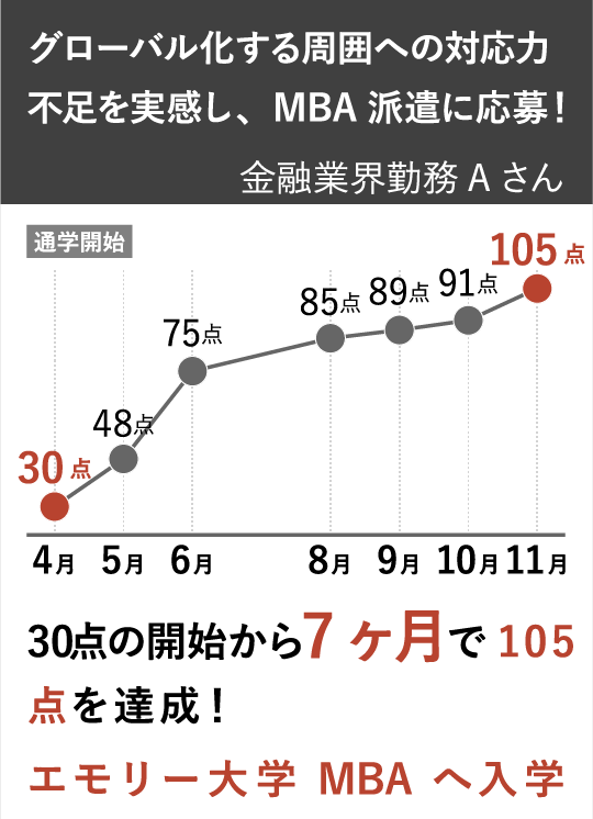愚直に繰り返せるか?すぐに成果が出ないからと言って別の学習方法を取り入れ、それを繰り返し結局身につかない人がいます。 短期間のスコアアップに必要な学習方法があります。それらはシンプルな上に効果的。裏技などとは無縁な堅実な学習方法です。そのため、ある意味面白みに欠けます。しかし、それらをどれだけ愚直にやり続けられるか?にかかっていると言えます。2019年度 MBA合格者の声