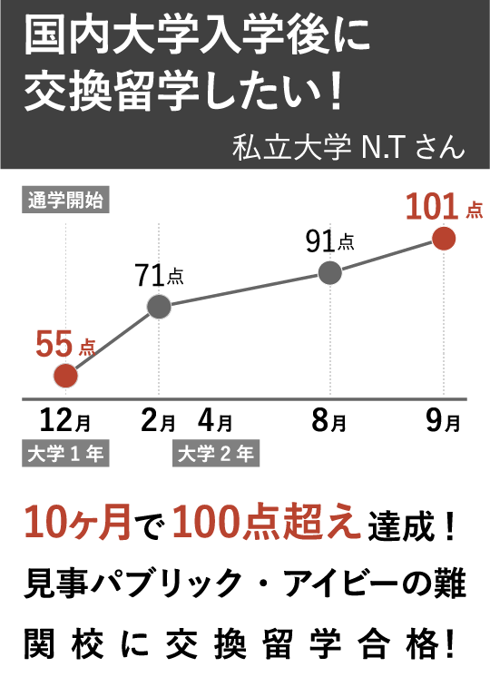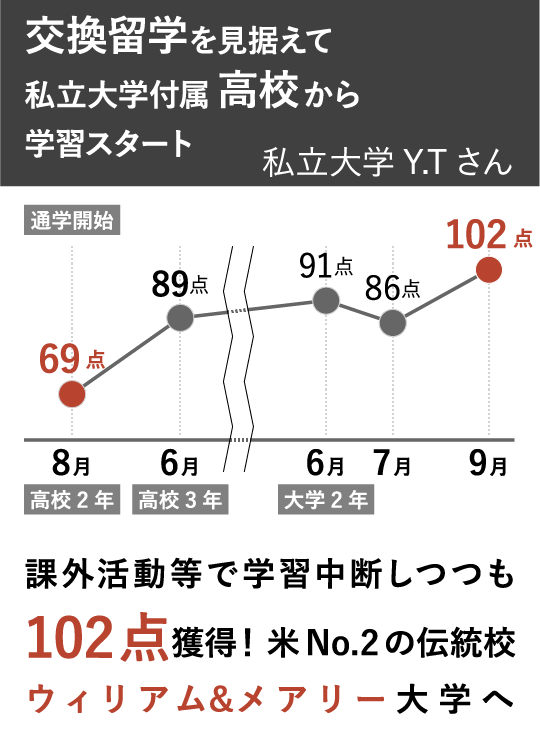 TOEFLの学習をはじめとした留学対策は、必要な準備を圧縮し、短期間で志望校合格するためのものです。